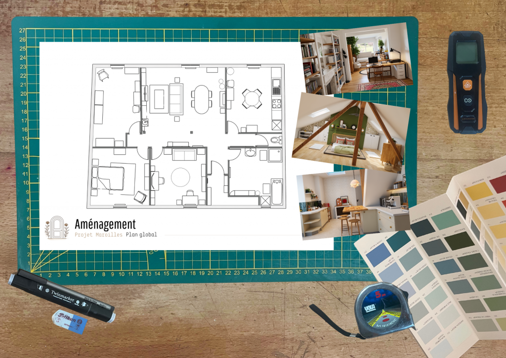 Une fois votre choix validé, je passe à la création de votre book déco professionnel personnalisé. Ainsi, vous disposez d’un document complet et structuré. Il offre une vision claire et détaillée du futur aménagement de votre espace.