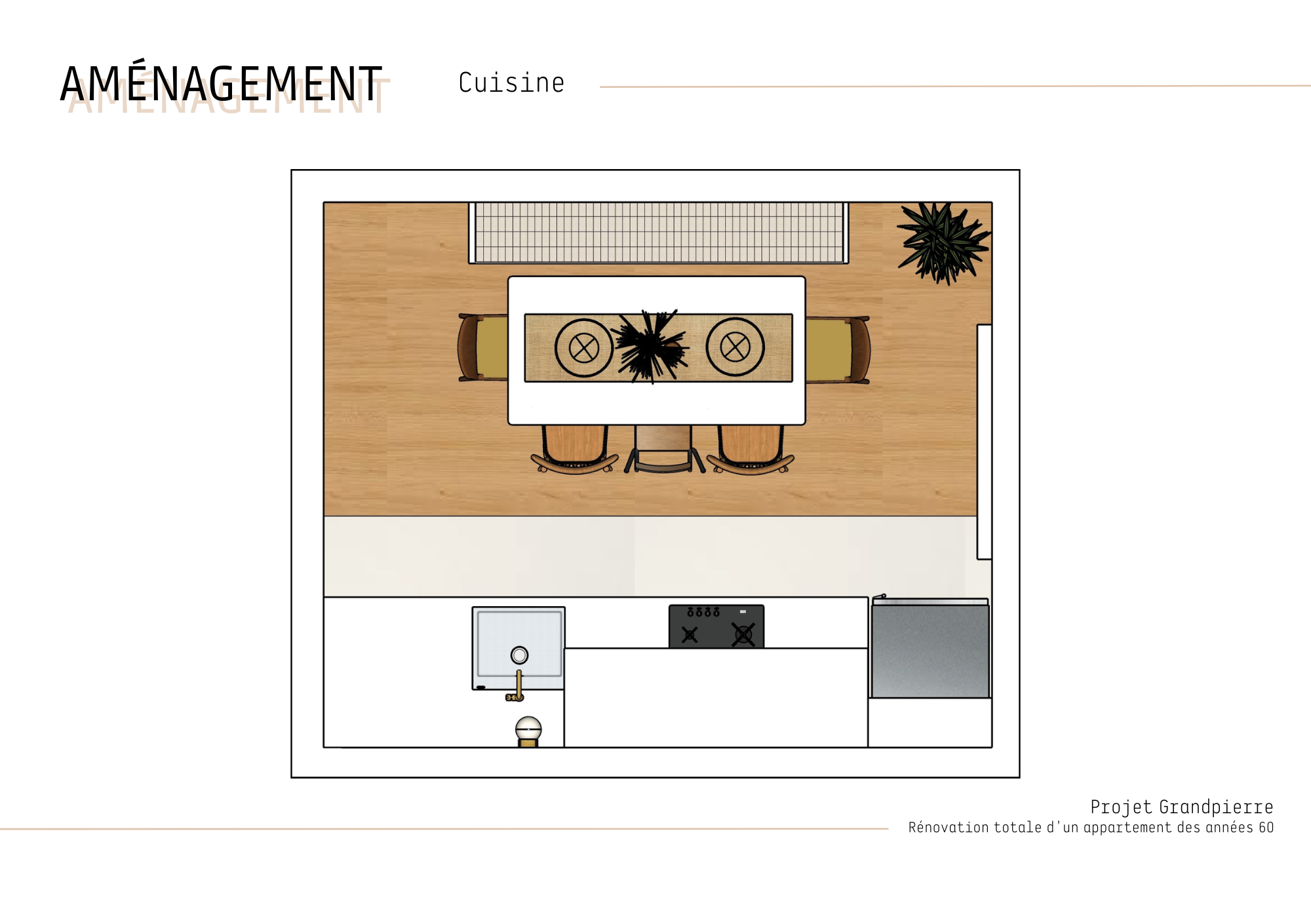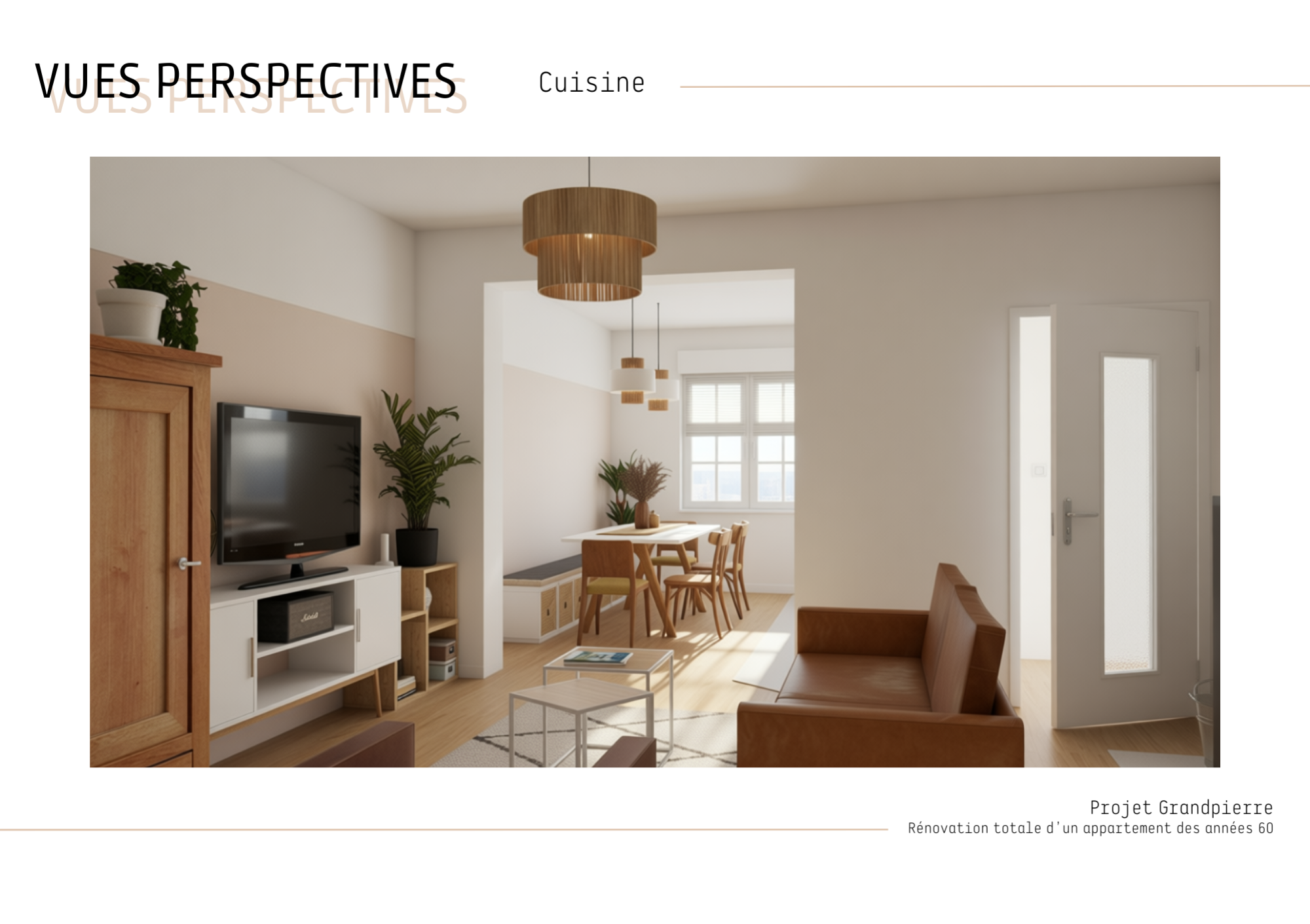 Transformation d’un appartement des années 60 en un espace familial chaleureux.