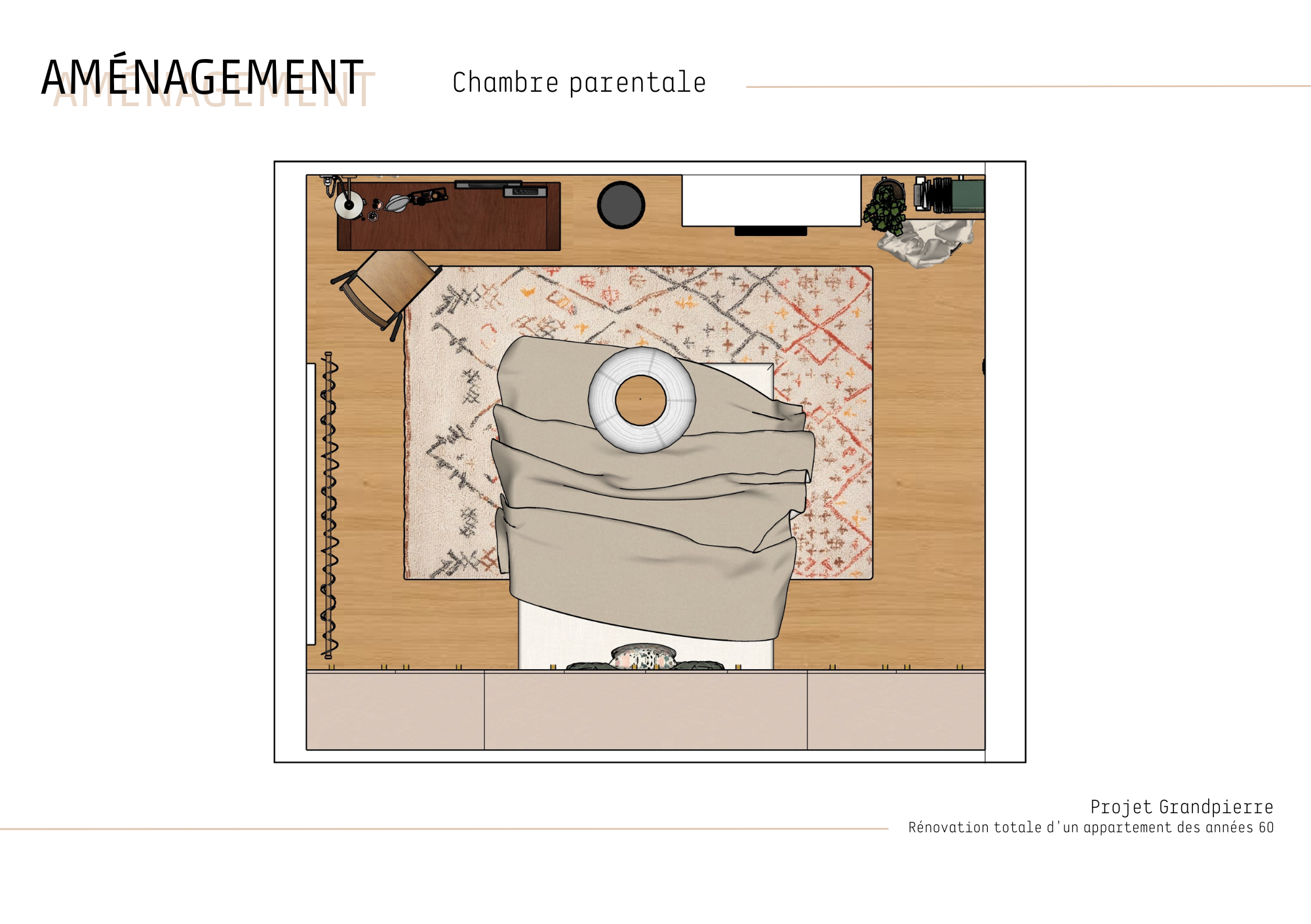 Une chambre parentale compacte pensée pour allier confort et optimisation. Chaque aménagement a été réfléchi pour structurer l’espace sans l’alourdir.